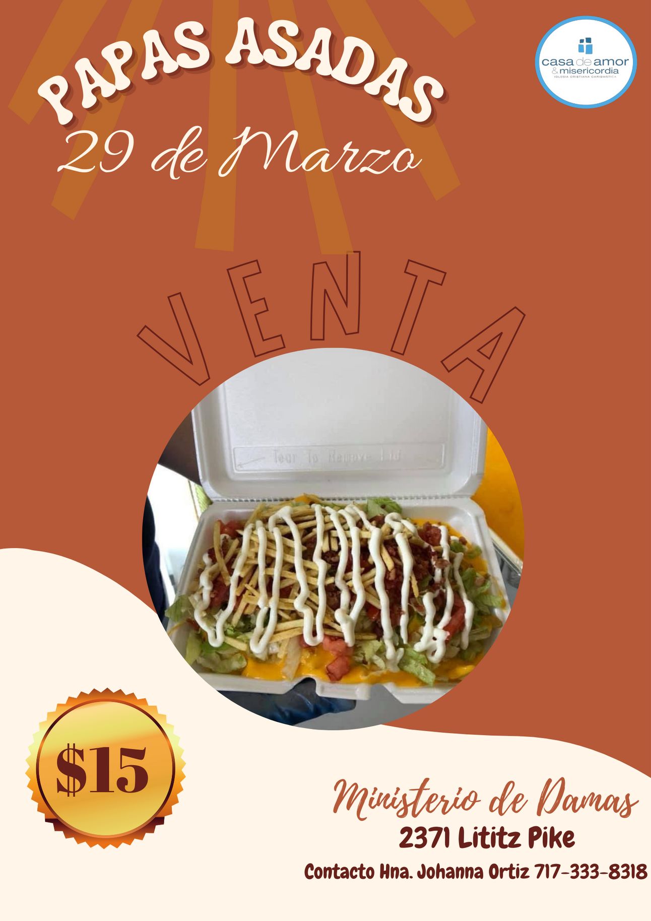 Venta de Papas asadas Pro - ministerio de damas en la iglesia.